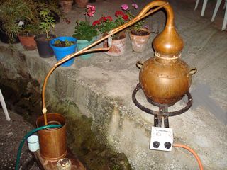 Cuando tengamos suficiente aguardiente de la 1ª destilación, tanto como para ocupar el 80% del alambique, procederemos a la 2ª destilación.